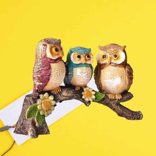 Innocent Owl Bird Sitting on Tree Branch Statue – Multi-Color Owl Showpiece for Home Décor & Living Room Gift (3 owl on branch)