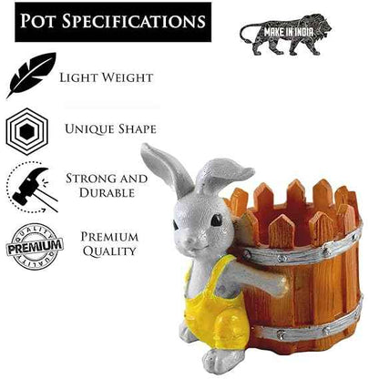 Perfect for brightening up any room, garden, or balcony, this Cute Rabbit with Basket Succulent Resin Pot is also a thoughtful and unique gift for plant lovers or anyone who enjoys whimsical décor.