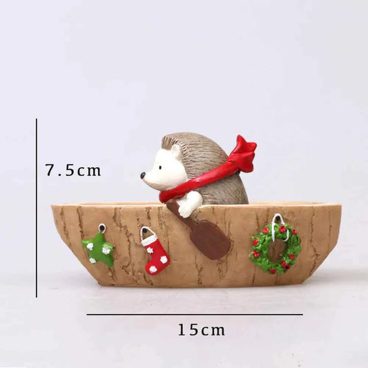 Cute Hedgehog Rowing Boat Succulent Resin Pot
