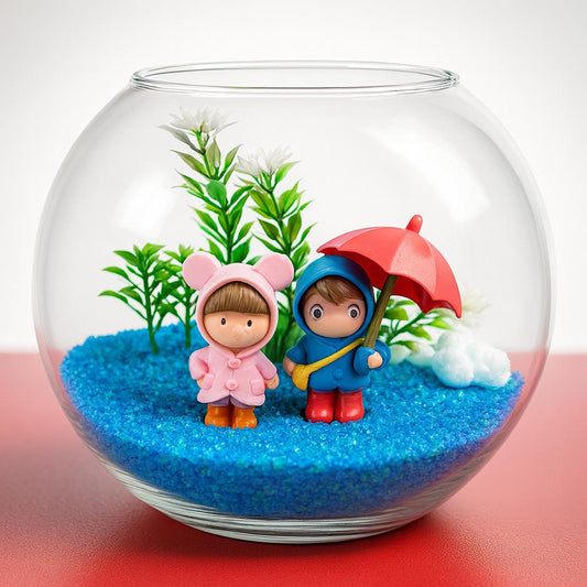 Cute Rainy Couple Miniature Garden Kit – Table Top Decor